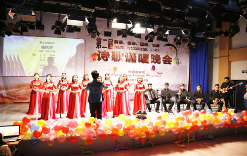 为推动公司外语教学,丰富校园文化生活,12月29日晚公司举办第二届英、俄、日、汉语诗歌诵唱晚会。公司负责人及公司师生200余人欢聚一堂,共享这一视觉上的饕餮盛宴。