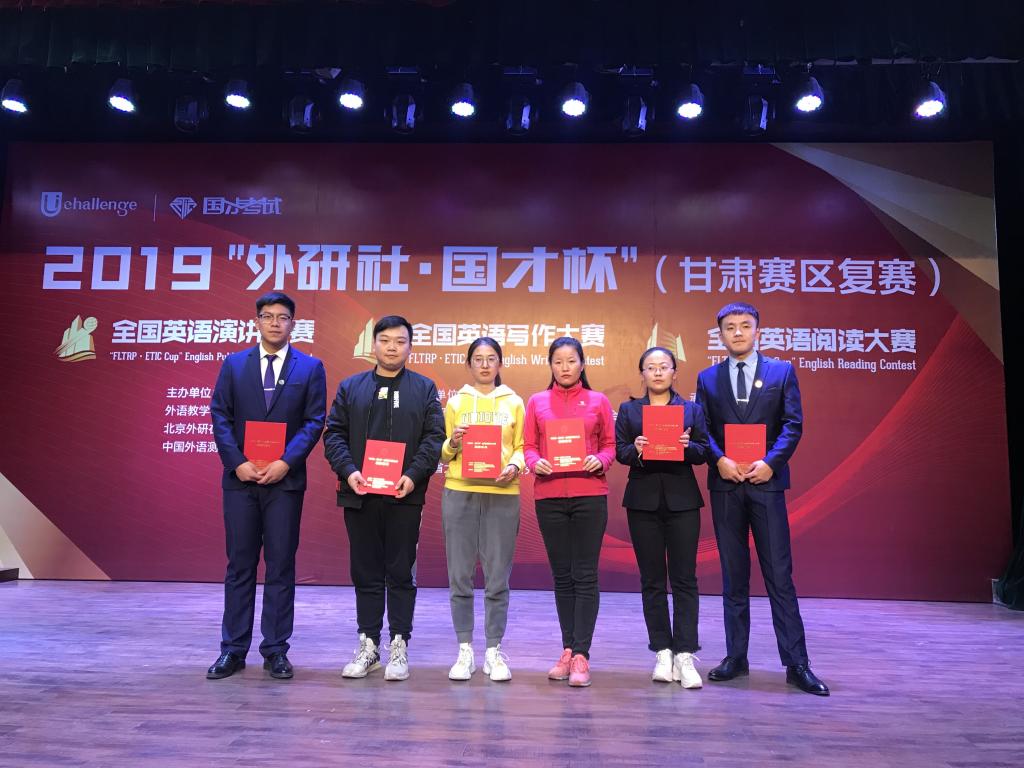 10月26日,2019年“外研社·国才杯”全国英语演讲、写作、阅读大赛甘肃赛区决赛在西北师范大学落下帷幕,甘肃赛区共20所本科院校选派112名员工参赛,bv伟德国际1946选派6名员工参加了三项大赛。经过bv伟德国际1946前期系统培训和指导,在现场的激烈角逐中,公司员工武青青获写作大赛一等奖,徐梓峰获演讲大赛二等奖,黄伟获演讲大赛三等奖,铁梦萱、王玥获阅读大赛优秀奖,朱明哲获写作大赛优秀奖。bv伟德国际1946写作、演讲、阅读培训团队的吕瑛、井永洁、吴雅萌等教师分获各奖项优秀指导教师奖。此次参赛获奖员工为公司赢得了荣誉。