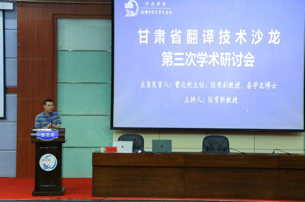7月15日,甘肃省翻译技术沙龙第三次学术研讨会在伟德国际1946官方网站图书馆报告厅举行。本次研讨会由bv伟德国际1946、河西文化翻译研究中心承办,西安迪佳悟信息技术有限公司、西安威爱教育软件开发有限公司、TELEVIC协办,世界翻译教育联盟(WITTA)翻译技术教育研究会、甘肃省翻译协会指导完成。省内本科高校外语院系领导、翻译专业负责人及骨干教师共计100余人参加了此次研讨会。